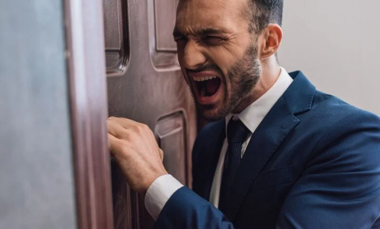 Un homme en colère debout sous le porche de sa maison | Source : Midjourney