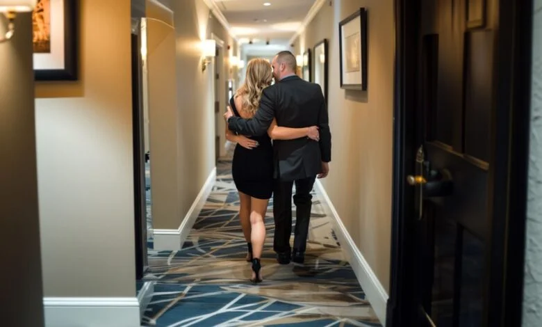 Un homme et une femme marchant dans le couloir d’un hôtel | Source : Midjourney