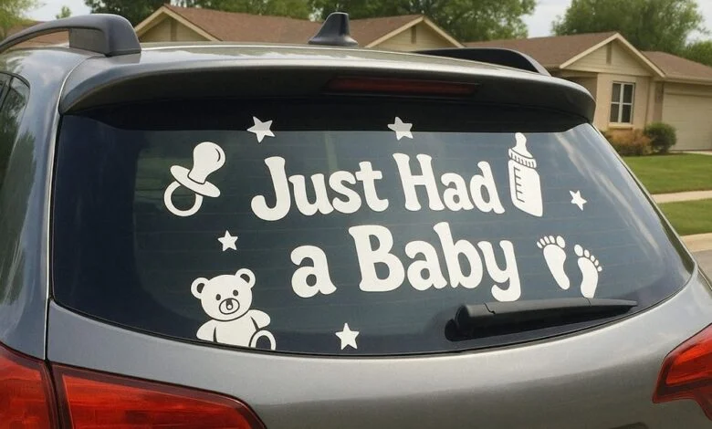 Elle était là. Des lettres blanches en gras sur la lunette arrière : « Nous venons d’avoir un bébé ». Le genre d’autocollant que les nouveaux parents affichent fièrement au monde entier.